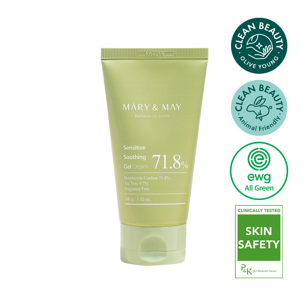 Mary&May Sensitive Soothing Gel Blemish Cream, 71.8% Houttuynia Cordata + 9.7% Tea tree extract, translucent gel type cream to soothe troubled and sensitive skin 2.46 fl oz