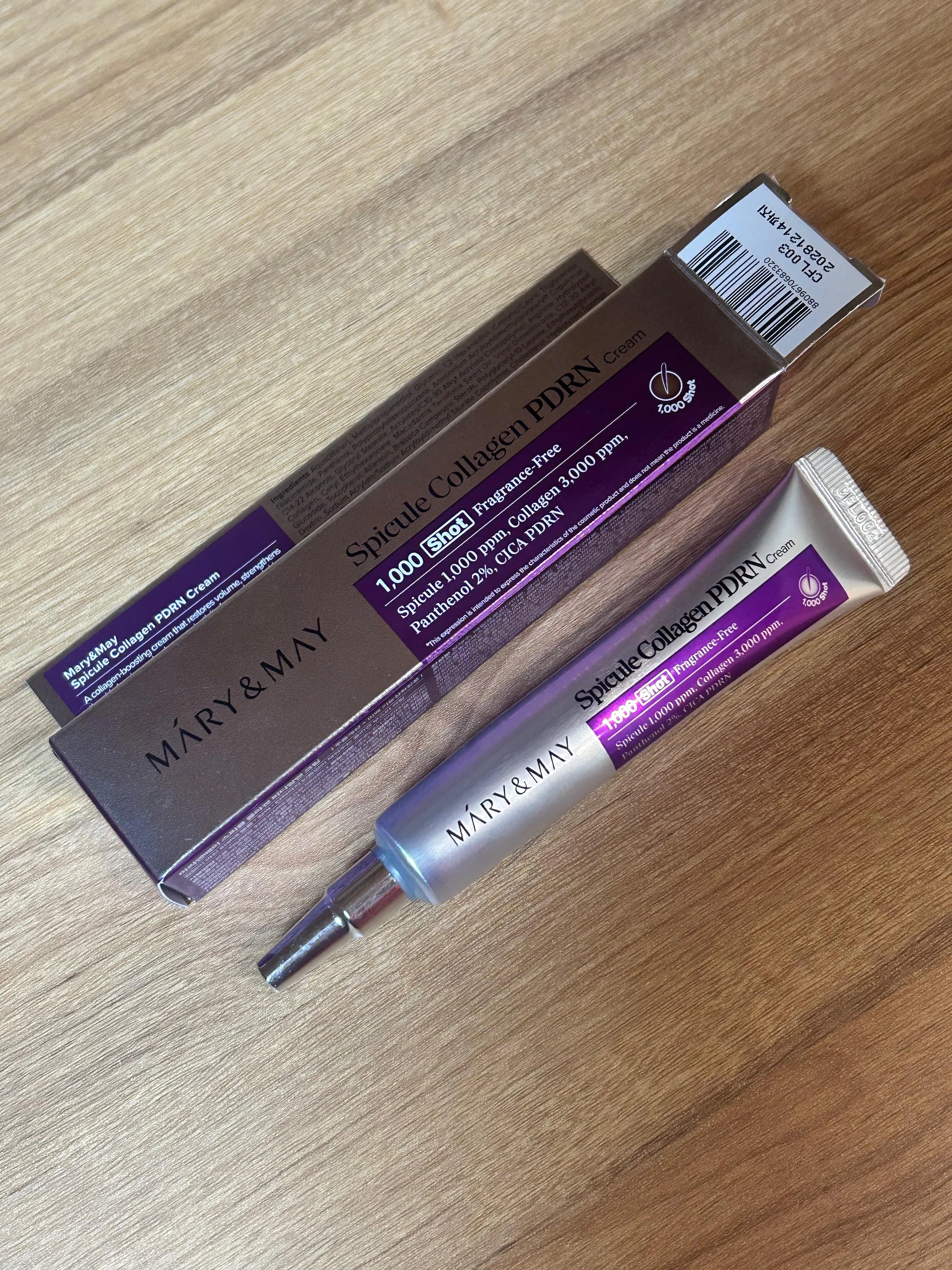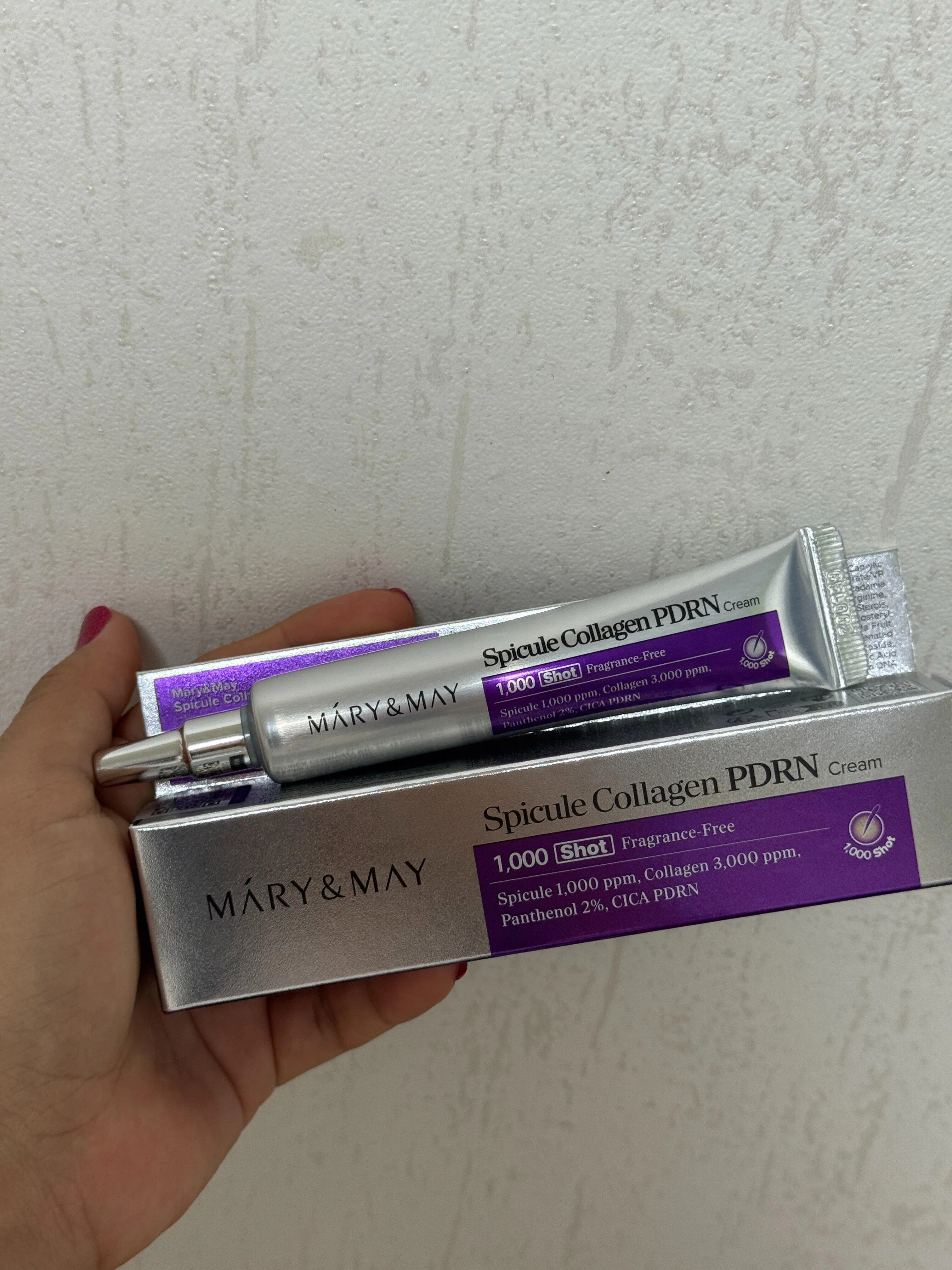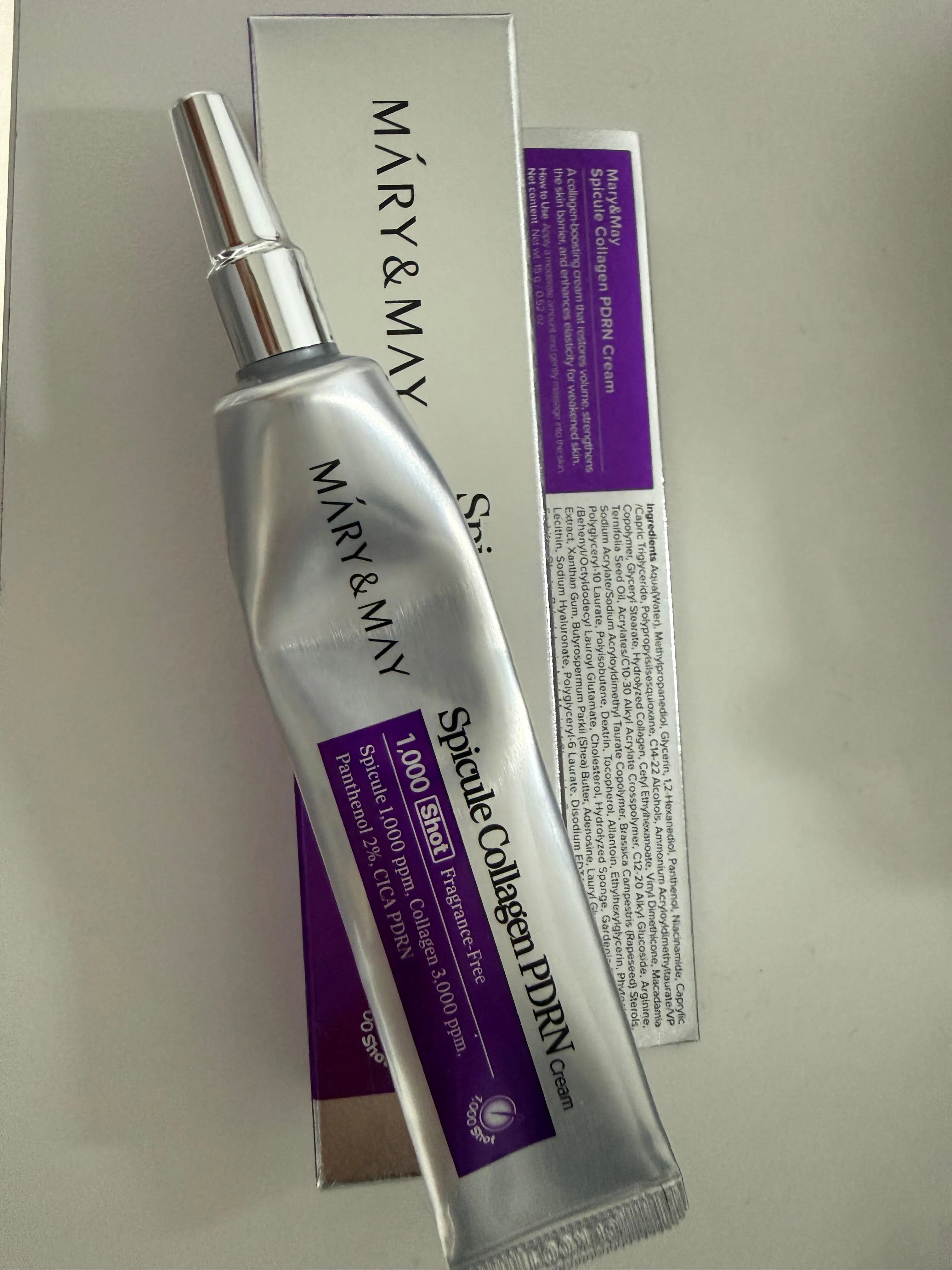 Mary&May Spicule Collagen PDRN Cream,Formulated with natural marine-derived micro spicules, 1/40 the size of pores, and high-performance marine collagen, this cream delivers intensive care for skin volume, barrier, and elasticity. Enriched with CICA PDRN, it soothes sensitive skin while promoting recovery.