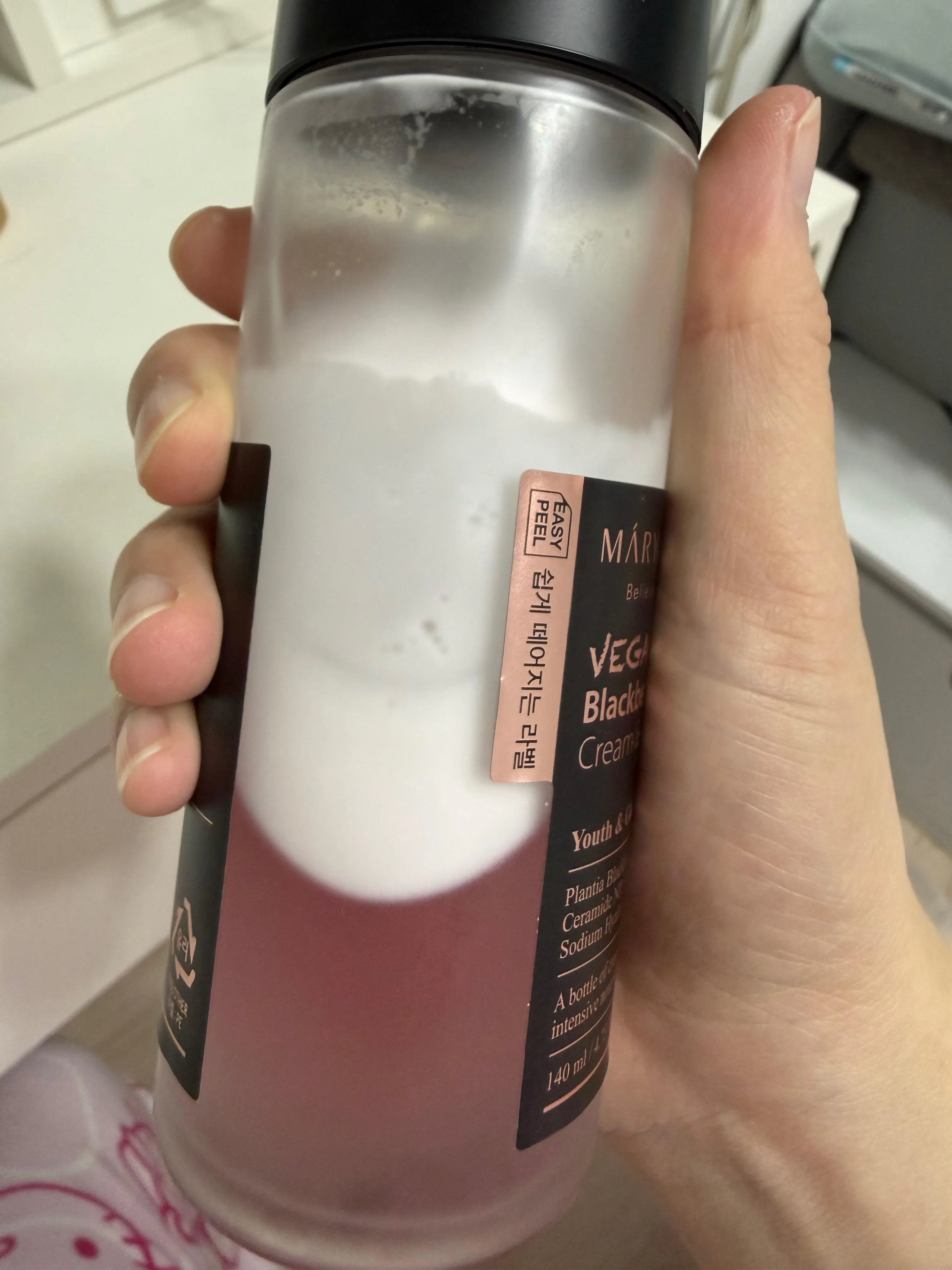- When the two layers are lightly shaken with Mary&May's special formulation Double Phase Emulsion technology, the high-viscosity cream dissolves in the moisturizing essence and stabilizes, and the concentrated nutrition is absorbed fresh and quick.