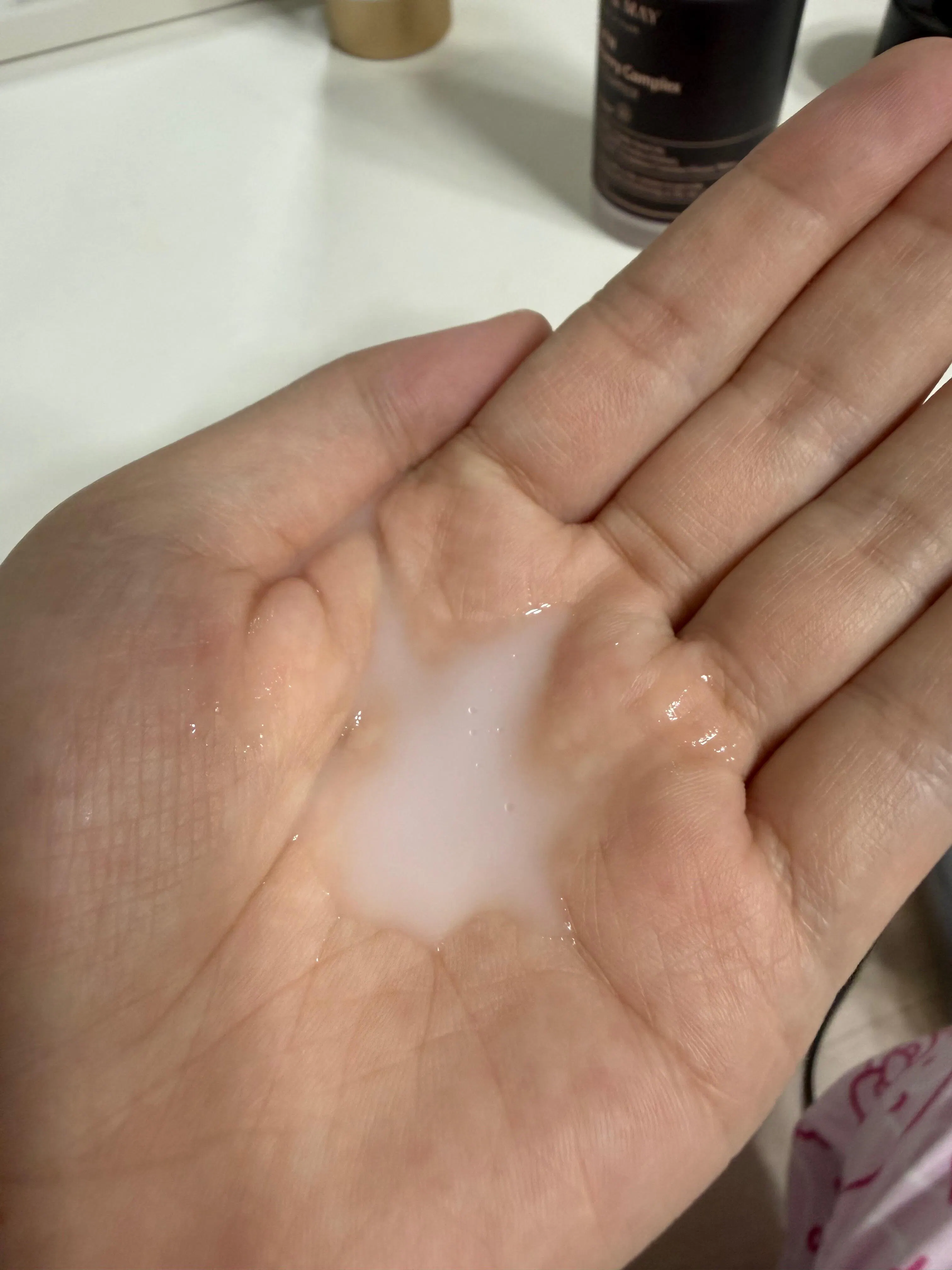 2. Take an appropriate amount on the palm of your hand and let it absorb.
